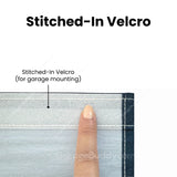 Every GarageBuddy now comes with a FREE upgraded installation kit that includes our stitched-in flat elastic bands for the bottom corners and Velcro rolls for the top. Simply stick the top of the cover to your door using Velcro. Then, hook the elastic bands to the second hinge behind your garage door, and voilà! You’re ready to show off a festive garage door cover that instantly spreads holiday cheer.